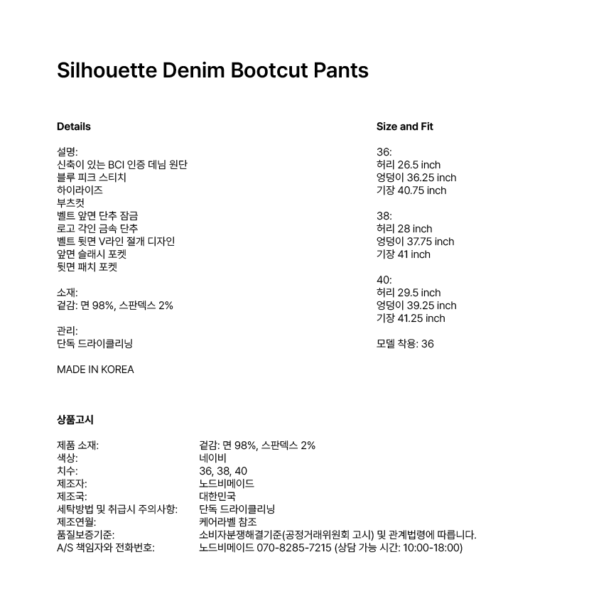 NODEBEMADESilhouette Denim Bootcut Pants00개 리뷰₩400,000배송정보상품코드8765934478배송방식택배배송비무료배송평균 배송일?3일국제배송불가능제주/도서산간제주 ₩4,000/도서산간 ₩4,000WALA WAVE x 이윤정 작가 한정판 아트 콜라보"한승수" 모델 PICK 패션 추천 가이드총 상품 금액₩0장바구니