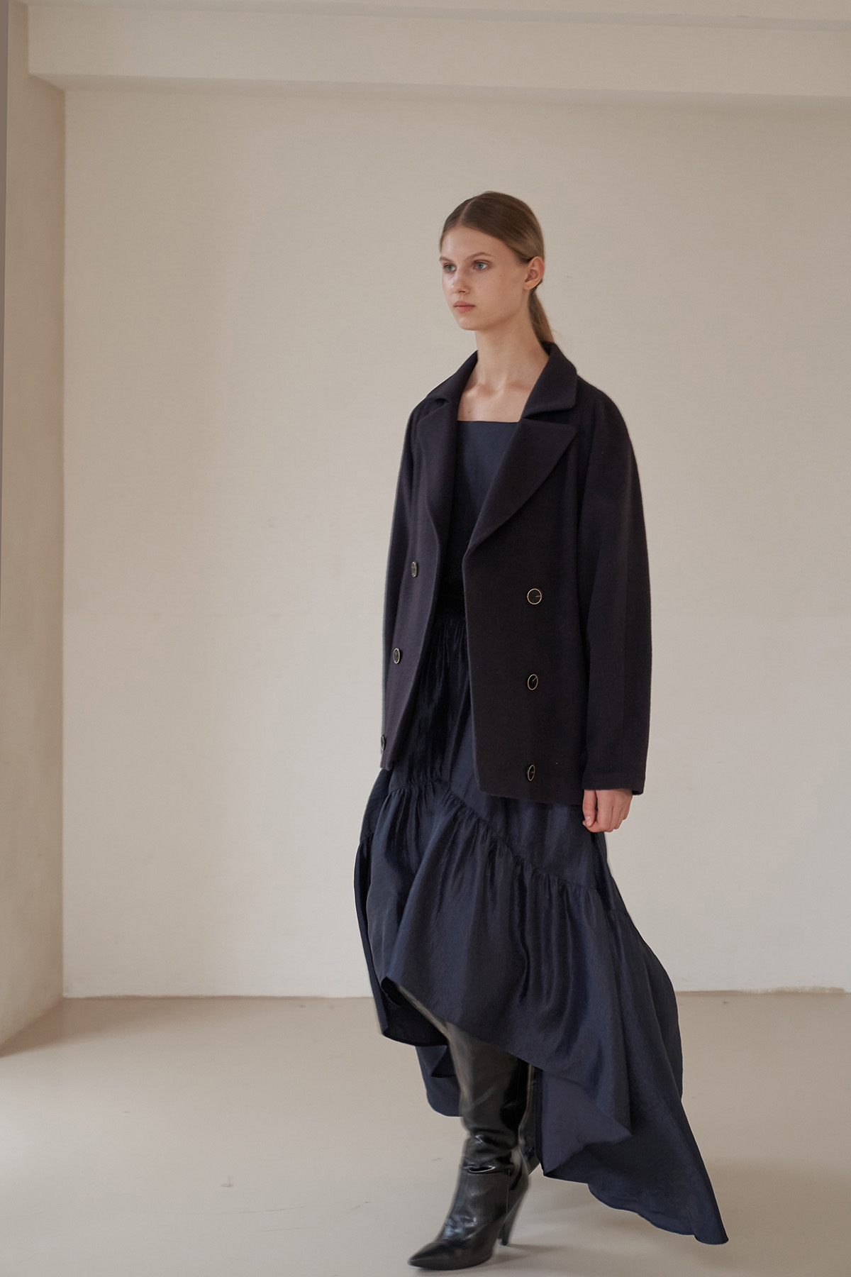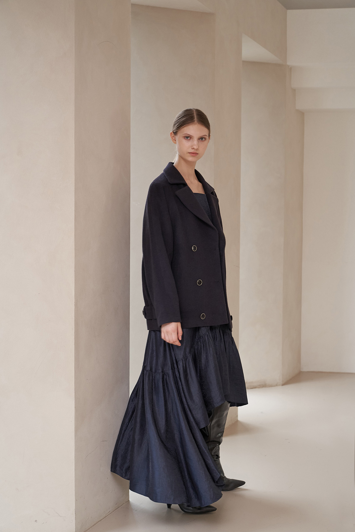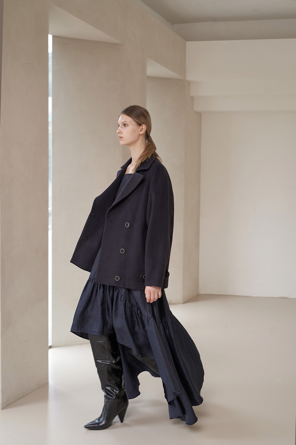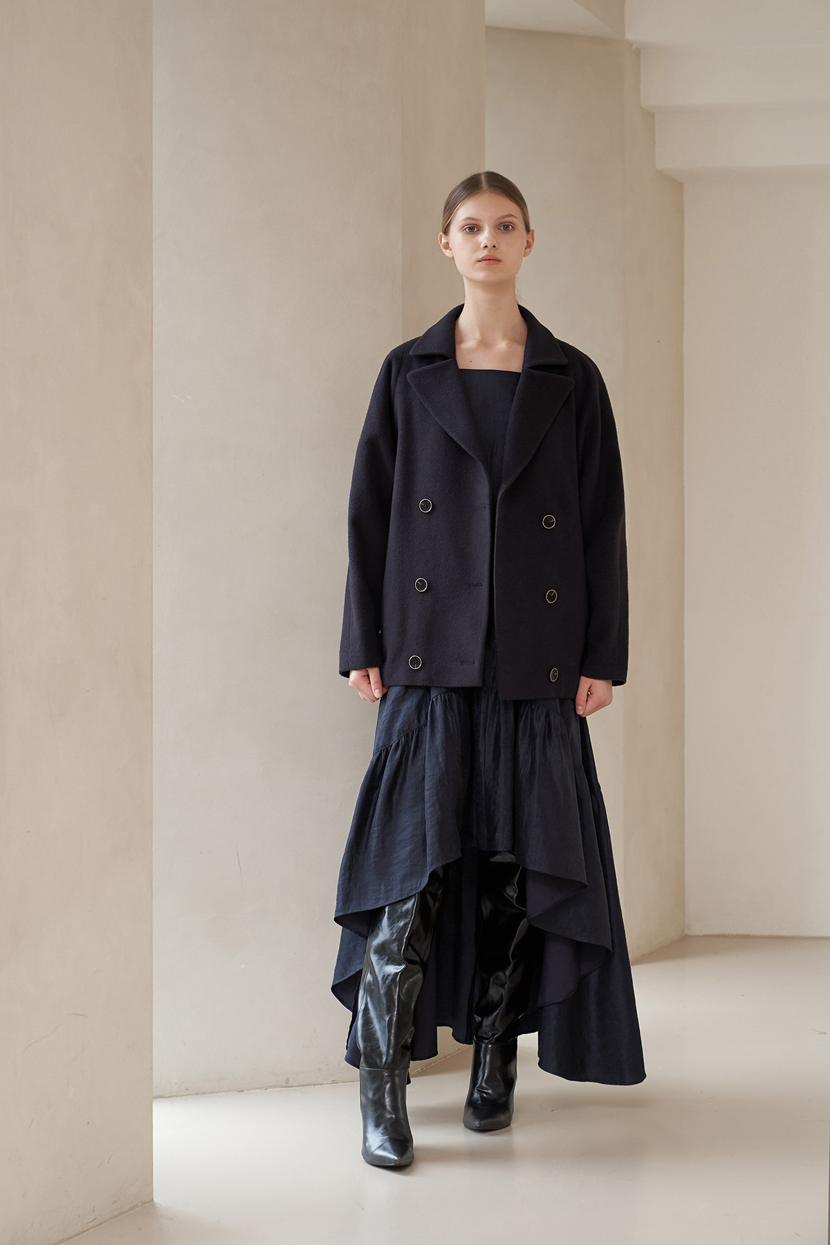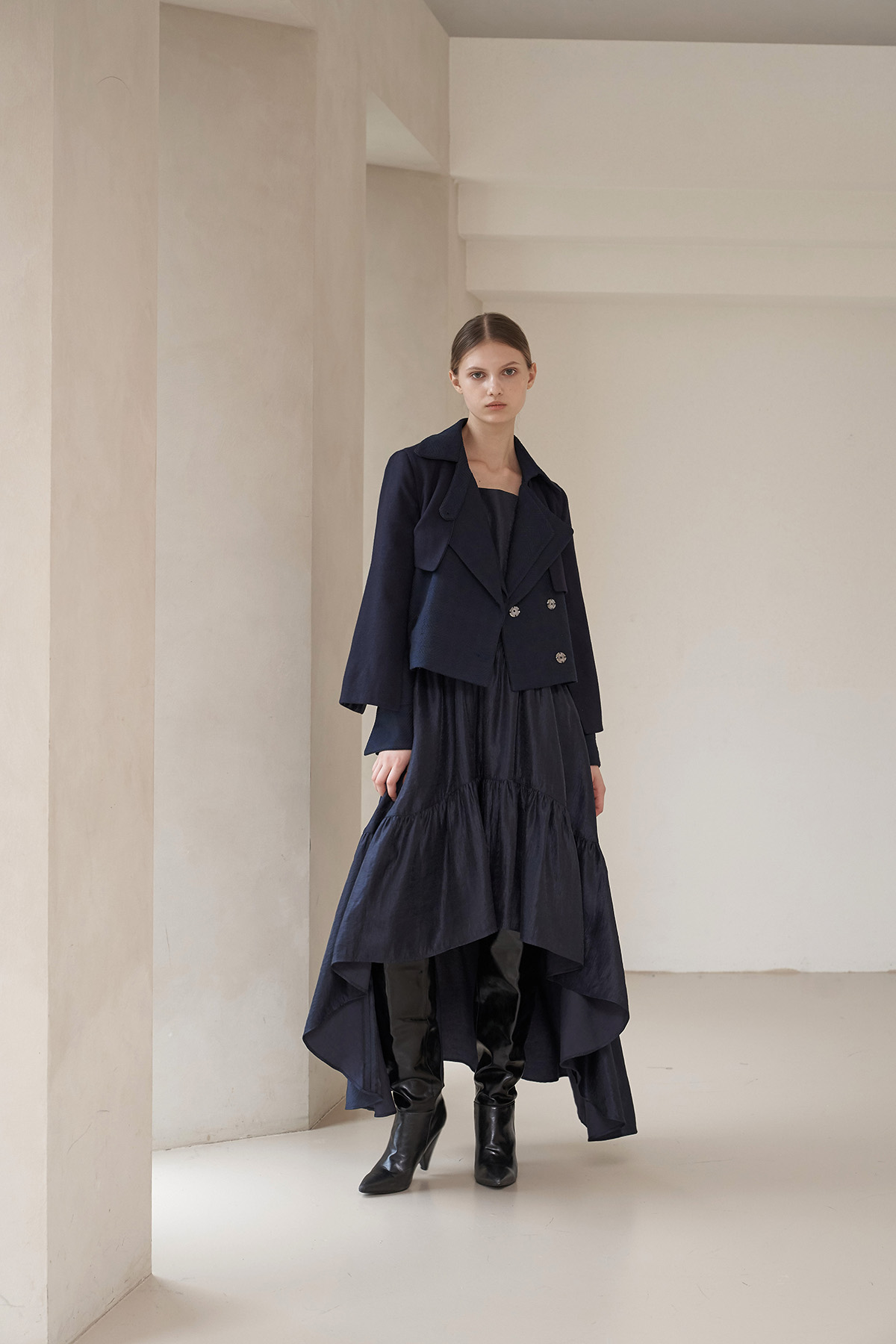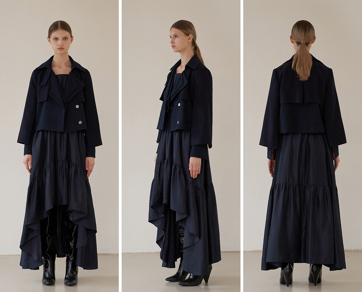 [까이지엔느] 스퀘어넥 7부 소매 언밸런스 롱 원피스