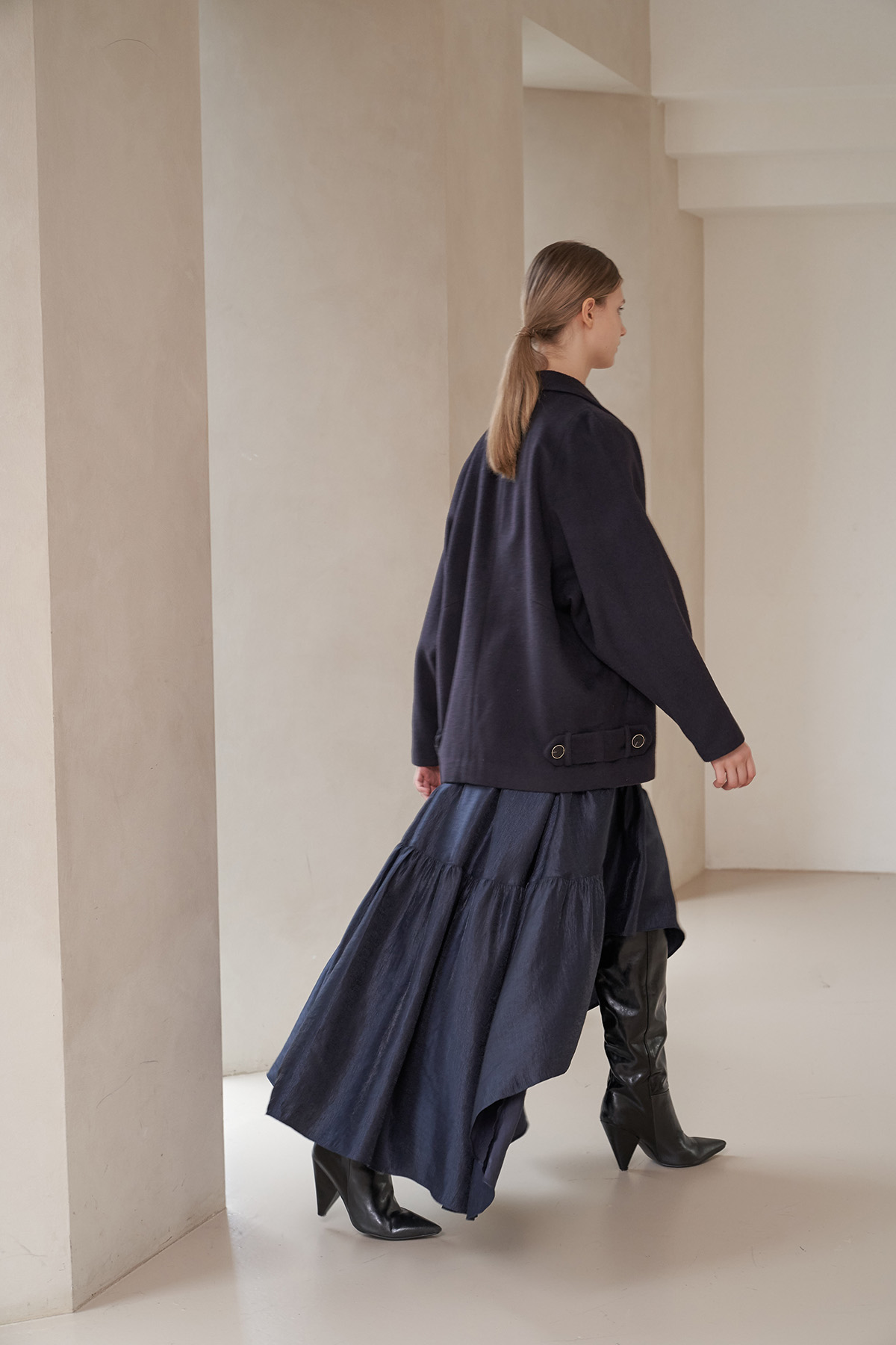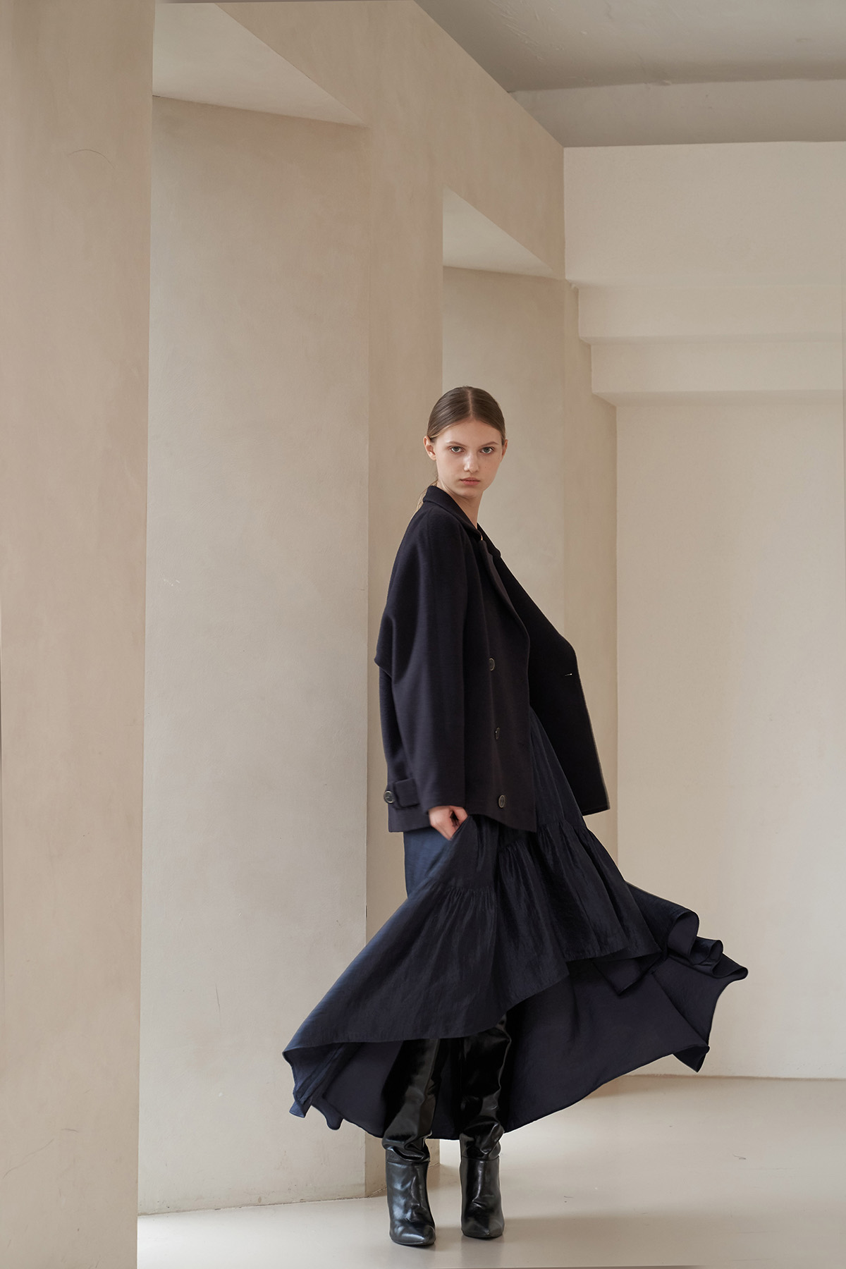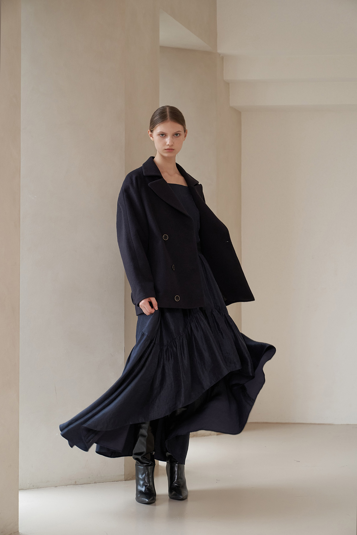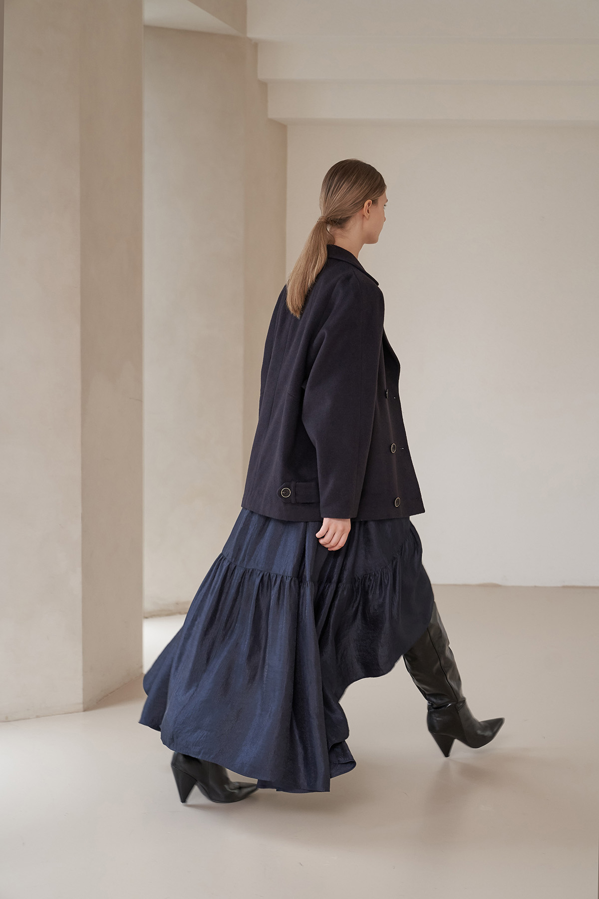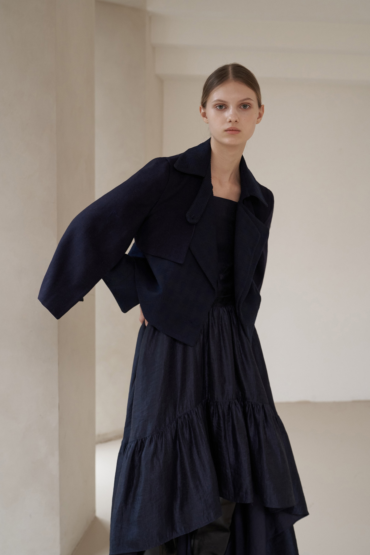 [까이지엔느] 스퀘어넥 7부 소매 언밸런스 롱 원피스