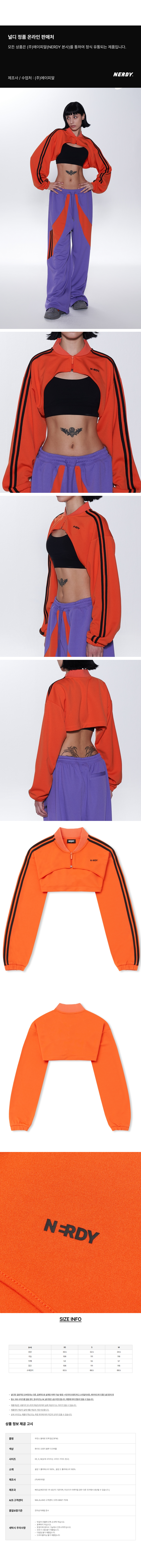 NERDY우먼스 볼레로 트랙 탑(23FW) 오렌지00개 리뷰28%₩69,000₩49,000배송정보상품코드0900676598배송방식택배배송비무료배송평균 배송일?5일국제배송불가능제주/도서산간제주 ₩8,000/도서산간 ₩5,000WALA WAVE x 이윤정 작가 한정판 아트 콜라보"한승수" 모델 PICK 패션 추천 가이드총 상품 금액₩0장바구니