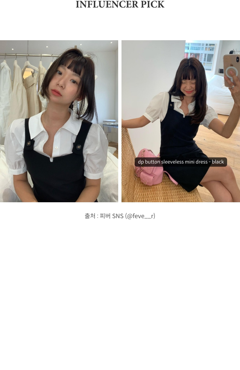 DEPOUNDdp button sleeveless mini dress - black00개 리뷰22%₩158,000₩123,240배송정보상품코드8808861417배송방식택배배송비무료배송평균 배송일?5일국제배송불가능제주/도서산간제주 ₩8,000/도서산간 ₩5,000WALA WAVE x 이윤정 작가 한정판 아트 콜라보"한승수" 모델 PICK 패션 추천 가이드총 상품 금액₩0장바구니