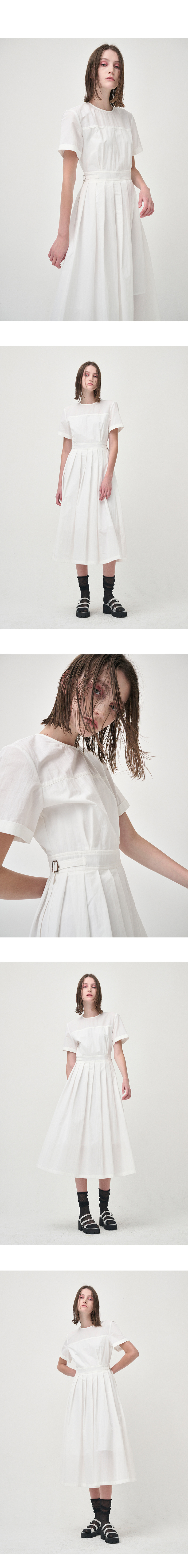 Half Sleeve Pleats Dress, White