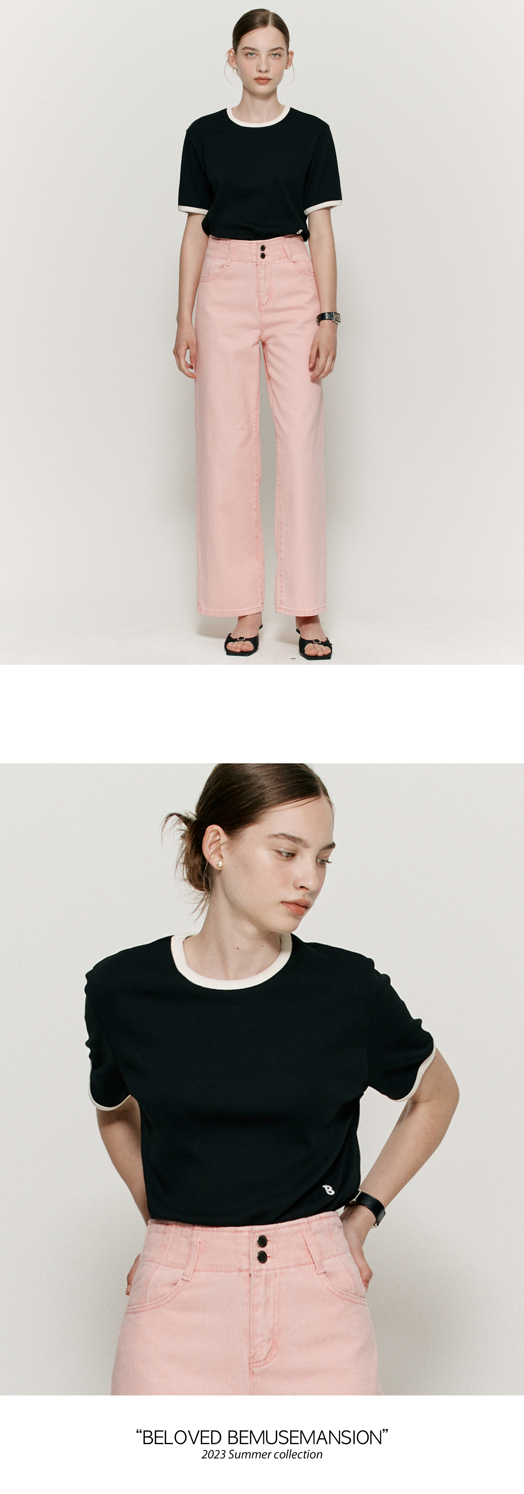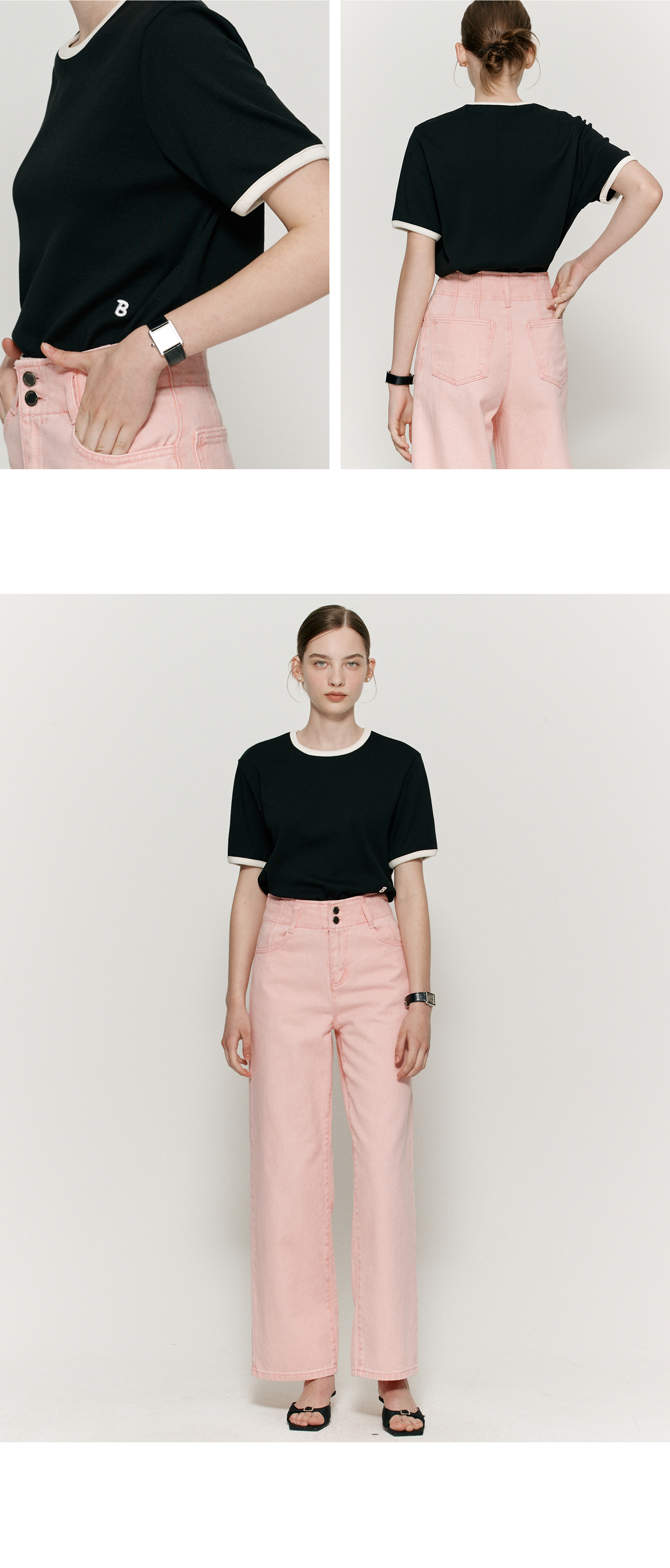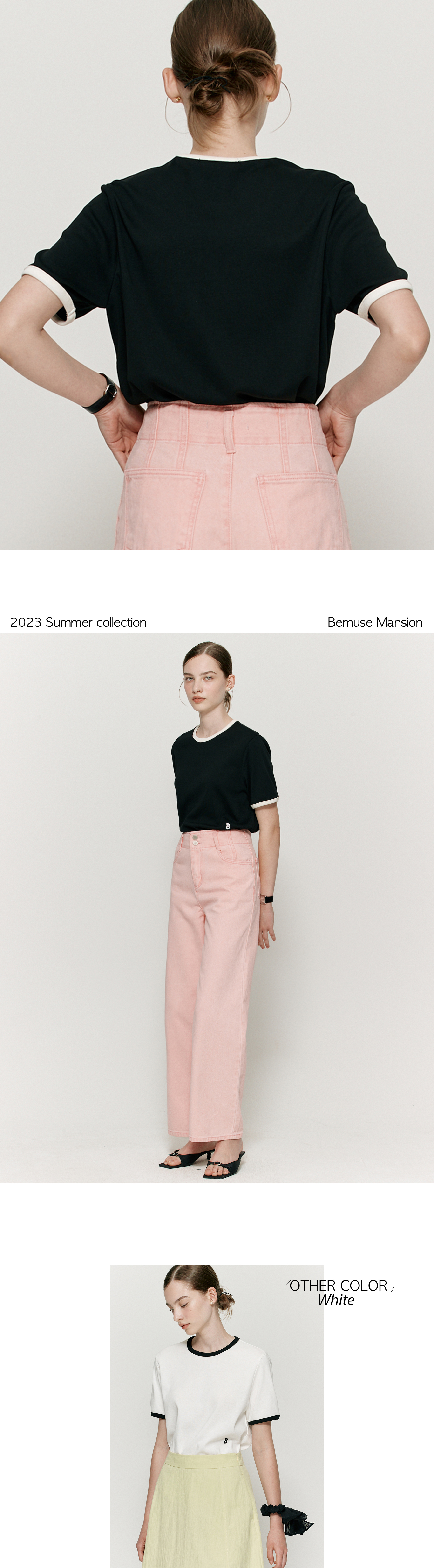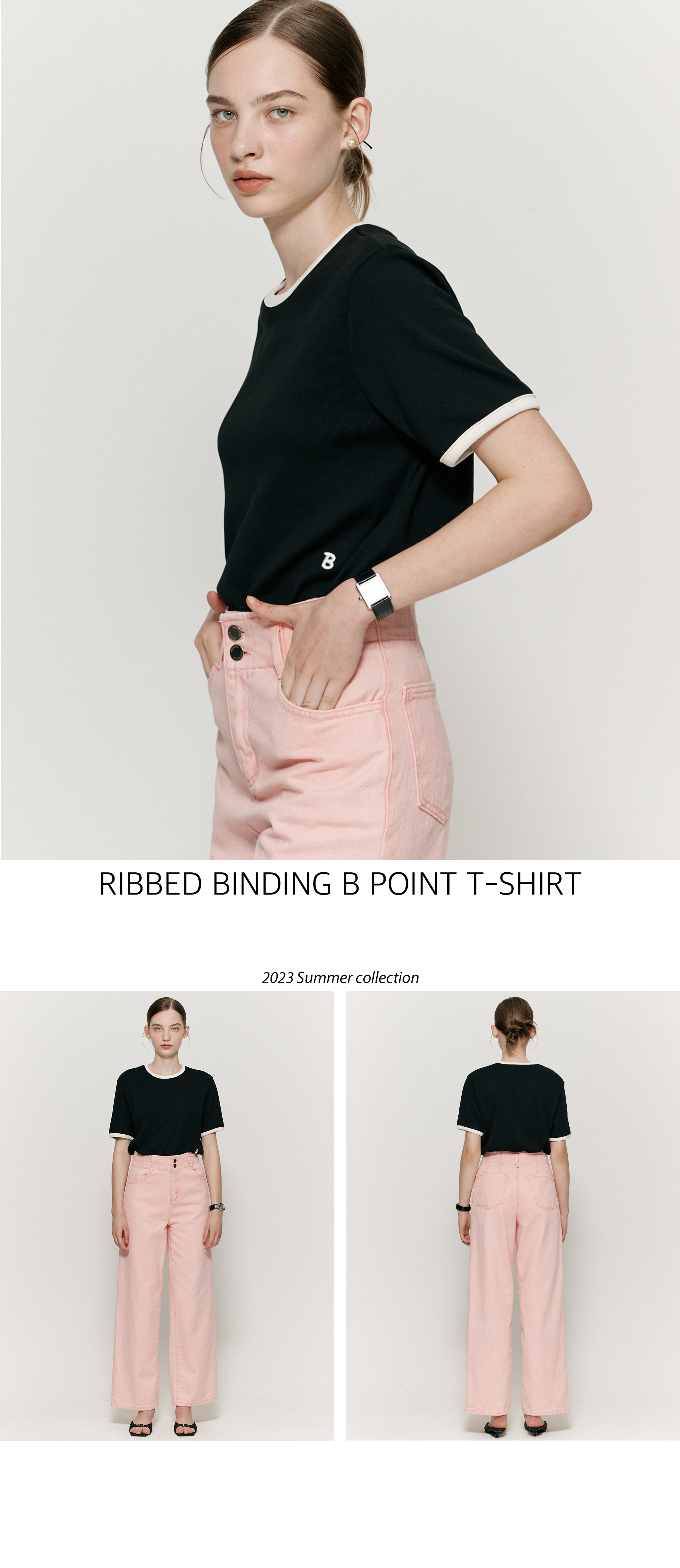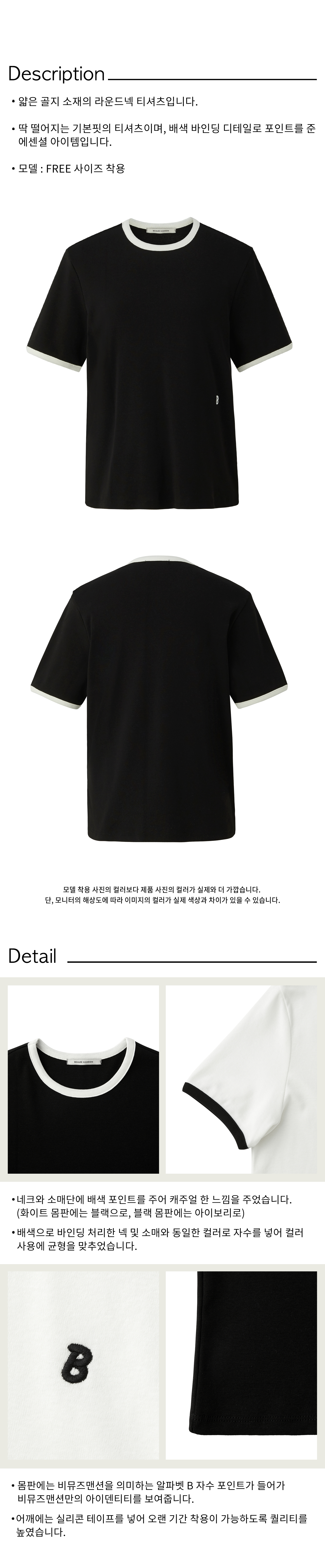 Ribbed binding B point T-shirt - Black