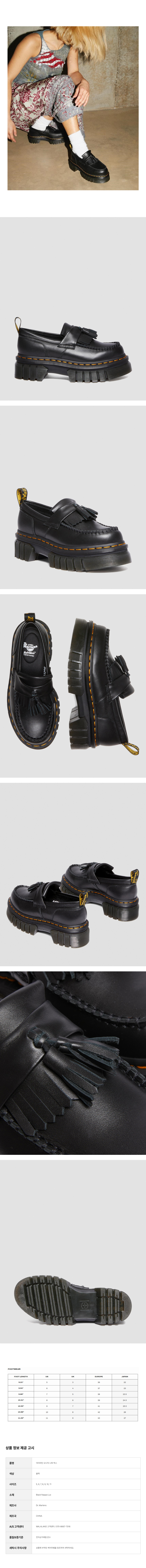 DR. MARTENS오드릭 로퍼 럭스 나파 플랫폼 키높이 5cm 테슬 구두00개 리뷰₩260,000배송정보상품코드7881033302배송방식택배배송비무료배송평균 배송일?5일국제배송불가능제주/도서산간제주 ₩8,000/도서산간 ₩5,000WALA WAVE x 이윤정 작가 한정판 아트 콜라보"한승수" 모델 PICK 패션 추천 가이드총 상품 금액₩0장바구니