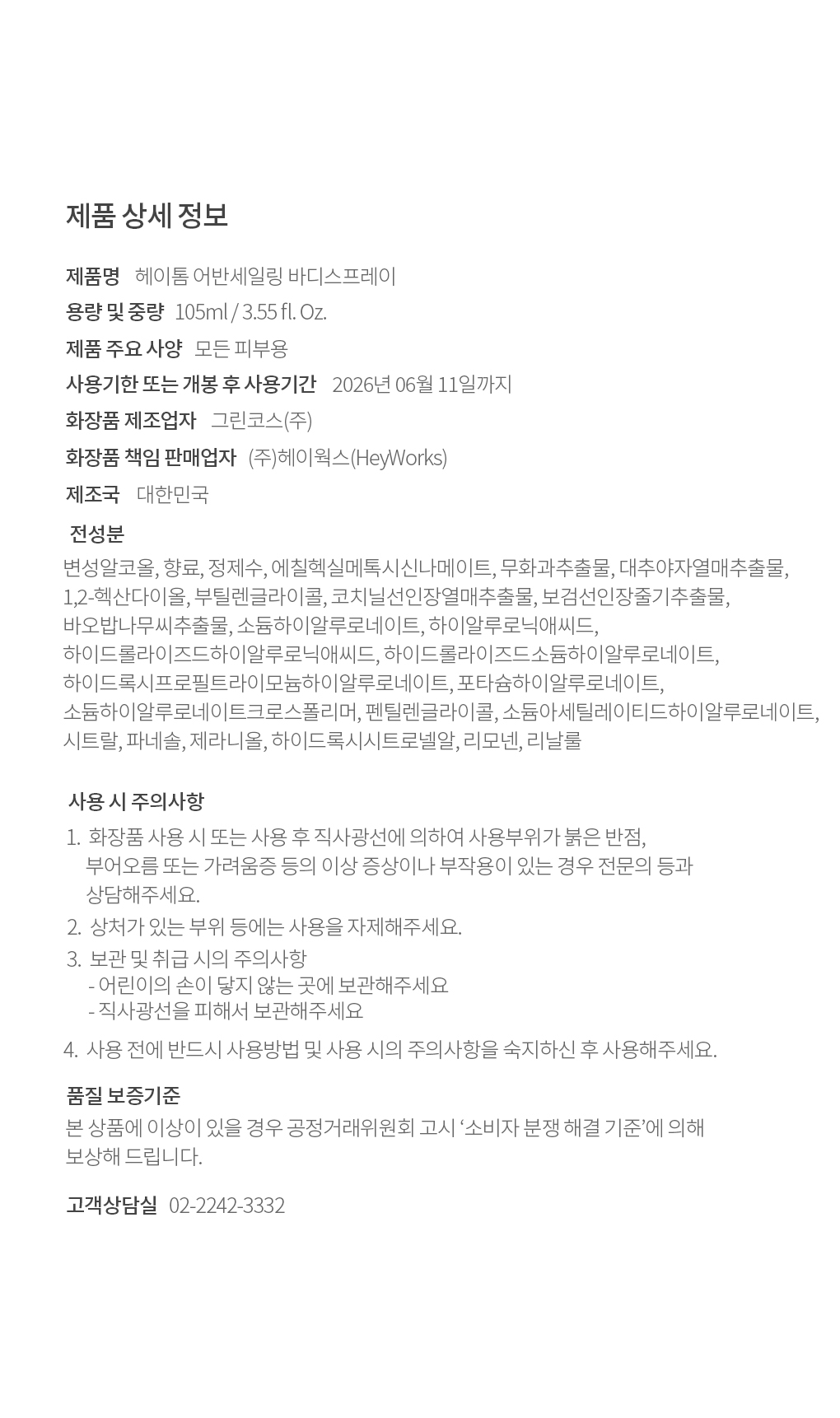 HEYTOM헤이톰 어반세일링 바디스프레이00개 리뷰13%₩22,000₩19,000배송정보상품코드9968017392배송방식택배배송비50,000원 이상 구매시 무료 배송평균 배송일?3일국제배송불가능제주/도서산간제주 ₩6,000/도서산간 ₩6,000WALA WAVE x 이윤정 작가 한정판 아트 콜라보"한승수" 모델 PICK 패션 추천 가이드총 상품 금액₩0장바구니